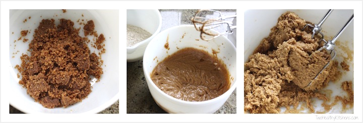- Transfer pecan mixture to a large mixing bowl and add 3/4 cup brown sugar, egg, and vanilla and beat on medium speed for about 2-3 minutes until very well incorporated, scraping bowl once or twice as needed.