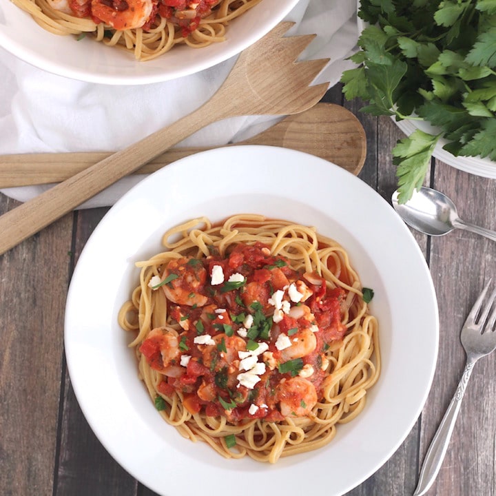 This fabulous Mediterranean Shrimp Pasta is so easy, yet tastes so gourmet. Impressive enough for dinner parties, but quick enough for busy weeknights!